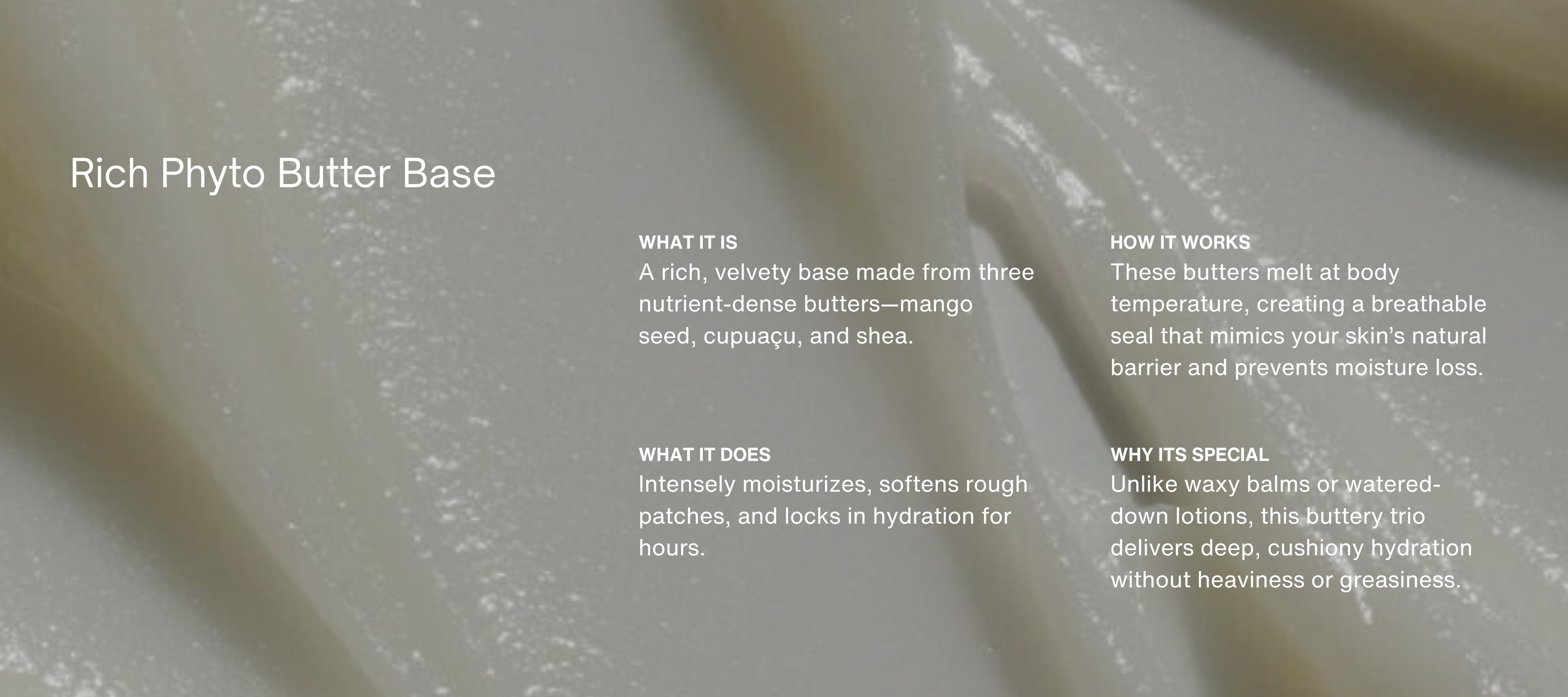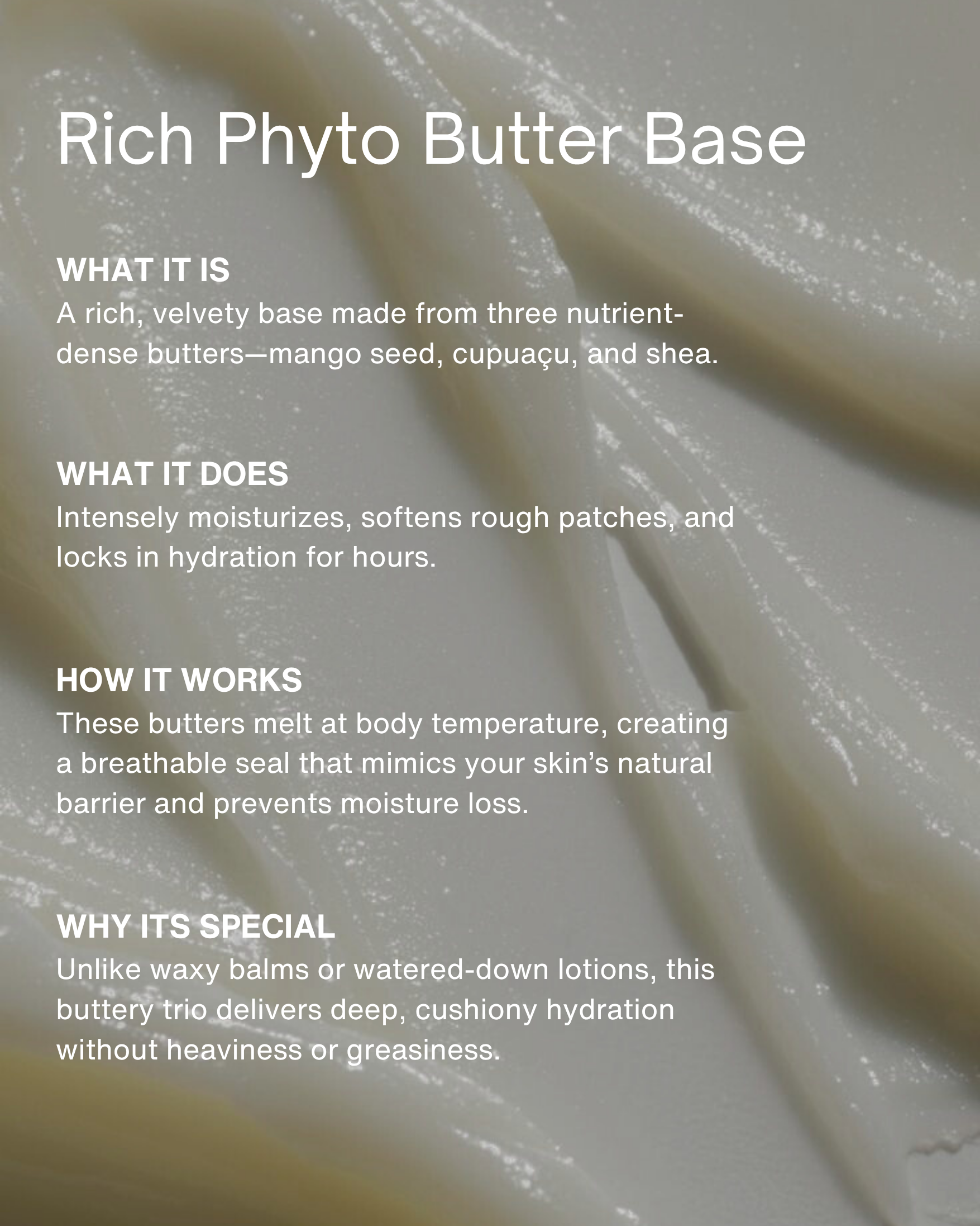 Unlike traditional body butters that sit on the surface of the skin or rely on heavy waxes for stability, this breakthrough process allows for seamless absorption, intense hydration, and lasting skin resilience - in any climate.