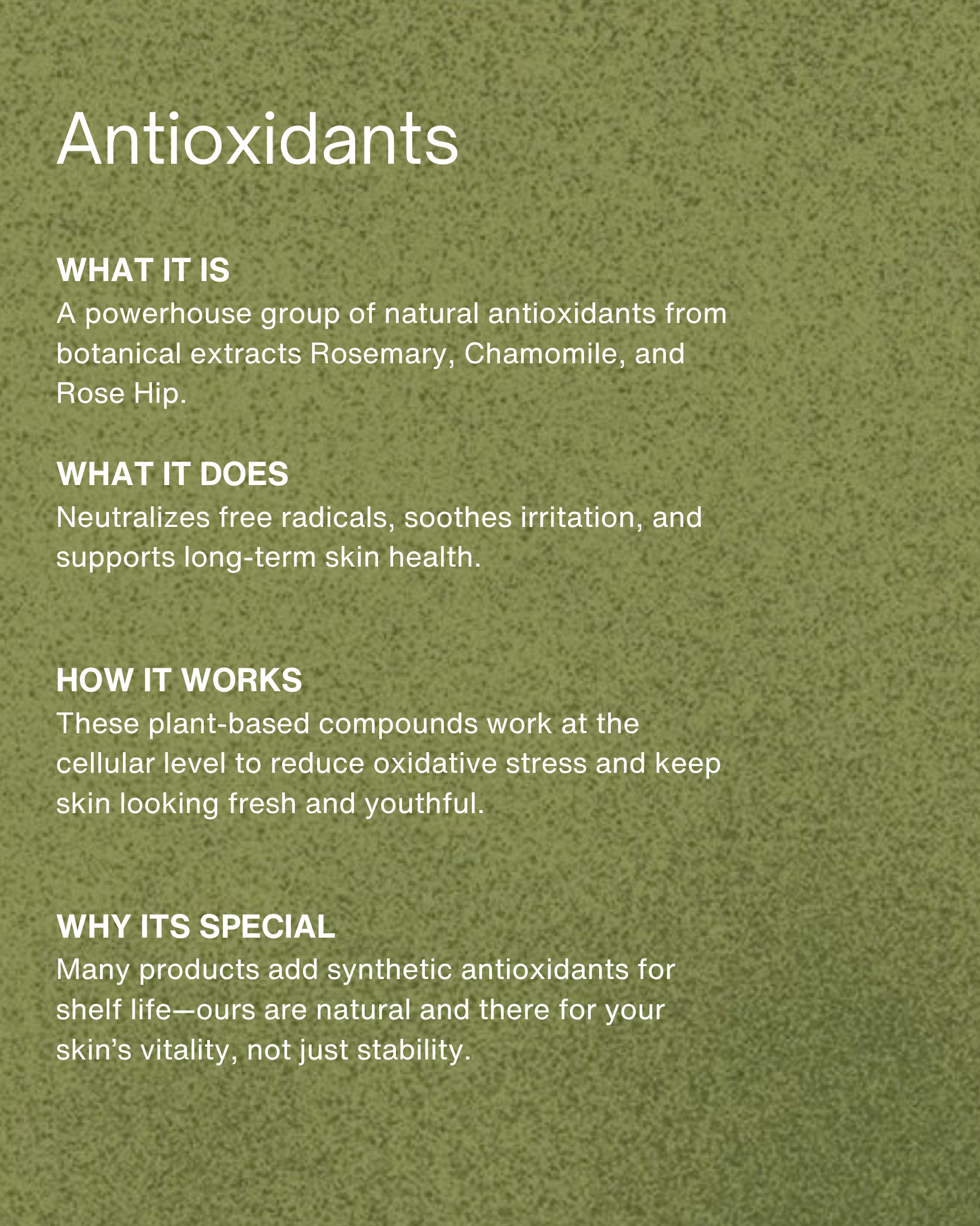 By removing water from the formula, we eliminate the need for harsh synthetic preservatives and emulsifiers, which do nothing for your skin and make space for more skin-beneficial ingredients. Every scoop of Super Butter is designed to nourish, protect, and repair—with zero dilution and no shortcuts.